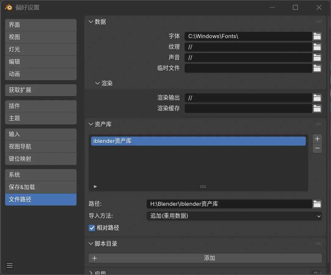 2.初次指定可能资产库中没有资产,将下载的资产解压后将blender文件放到对应目录中等待资产刷新即可。例如064阔叶树001、064阔叶树002解压后都放在iblender资产库\002模型资产\005植物花卉\064阔叶树目录下,以此类推。