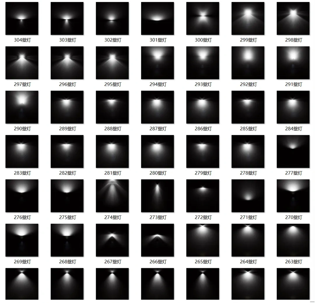 此集共304个壁灯IES光域网,全部经过测试并制作了缩略图,此套IES光域网文件从数万个IES中测试挑选而来,支持Enscape、Vray、Thea等全部渲染器。预览图为光域网截面,如果发现实际使用中形状有偏差,请注意灯光位置及照射角度。